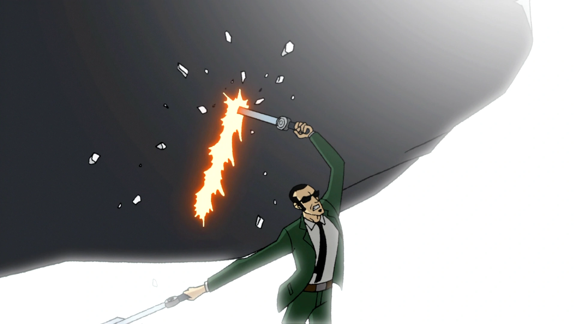 Agent 6 przecina spadający gruz.