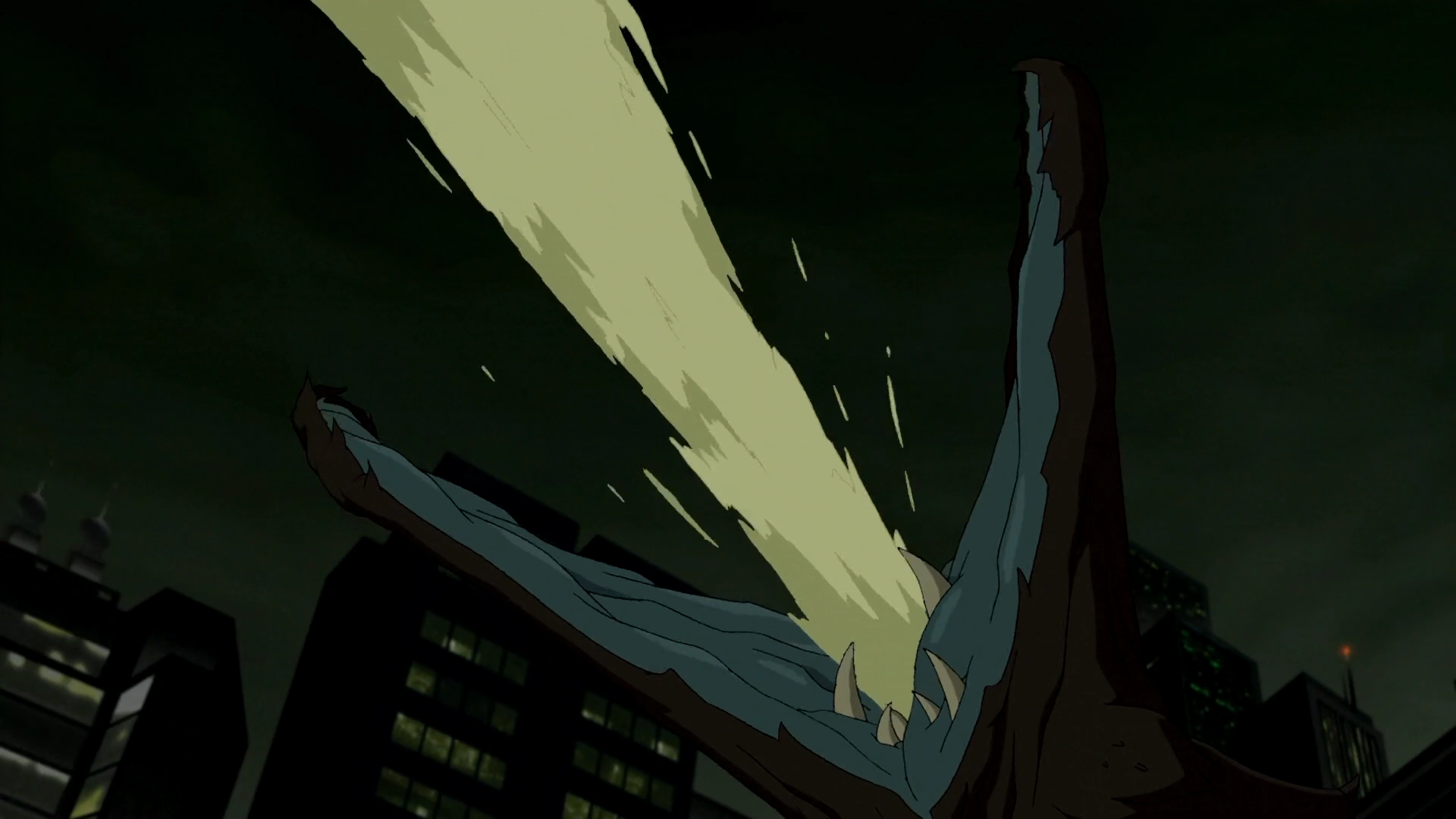 Jako E.V.O. posiadał wychudzoną, humanoidalną posturę z ciemnobrązową skórą i ogromną, rozwartą w pionie paszczą, podobną do paszczy krokodyla. Wnętrze pyska było fioletowe i wypełnione ostrymi kłami. Zamiast dłoni i przedramion posiadał kremowe ostrza.