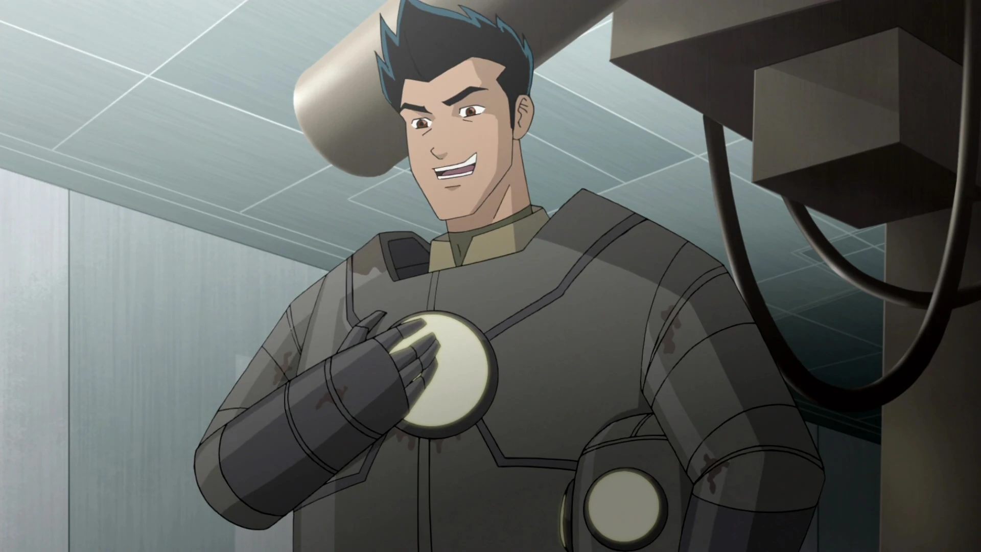 Przed wybuchem nanitów, nosił standardowy strój naukowca, składający się z niebieskiej koszuli, czerwonego krawatu oraz białego fartucha laboratoryjnego.