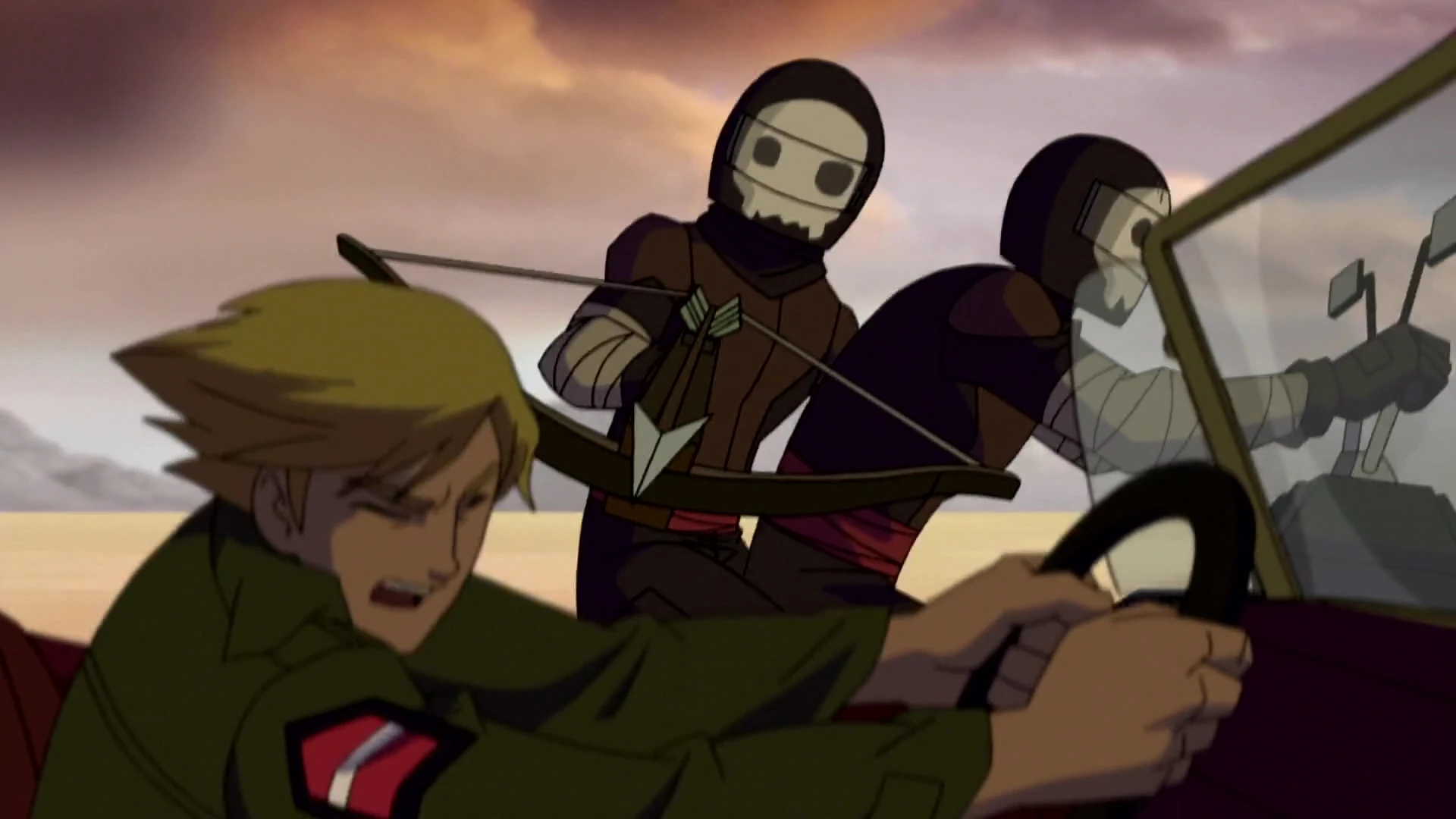 Anarchiści próbują powstrzymać Noah i Bobo.