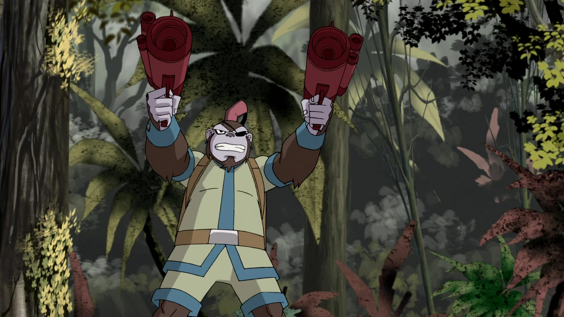 Bobo czyścił swoje pistolety w laboratorium, w trakcie gdy dr Holiday badała Rexa. Gdy szympans udał się z Salazarem na przejażdżkę po Zoo pupilków, zostawił swoje blastery w centrali, dlatego podczas potyczki ze Sforą i Van Kleissem musiał polegać na swoich umiejętnościach bojowych. Jednakże Agent 6, który namierzył położenie Salazara poprzez nadajnik w pielusze Bobo, przybył bohaterom na pomoc, gdy zostali zaatakowani przez Biowilka, Skalamandera i Wyrwę. Gdy tylko przybył na miejsce, mężczyzna rzucił szympansowi jego blastery. Dzięki pistoletom, Bobo z łatwością pokonał Skalamandera, niszcząc jego kryształy[5].