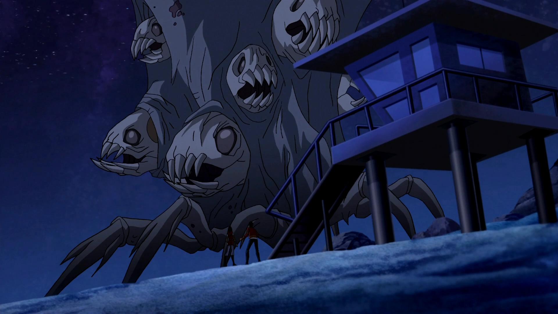 Potwór morski E.V.O. jest gigantycznym E.V.O. posiadającym sześć cienkich, ale zaostrzonych krabich nóg. Tuż nad nimi wyrasta pięć siwych macek, na których widnieją białe, kościste głowy. Mają one żółte oczy i ostre zęby. Ich żuchwa jest wysunięta do przodu.