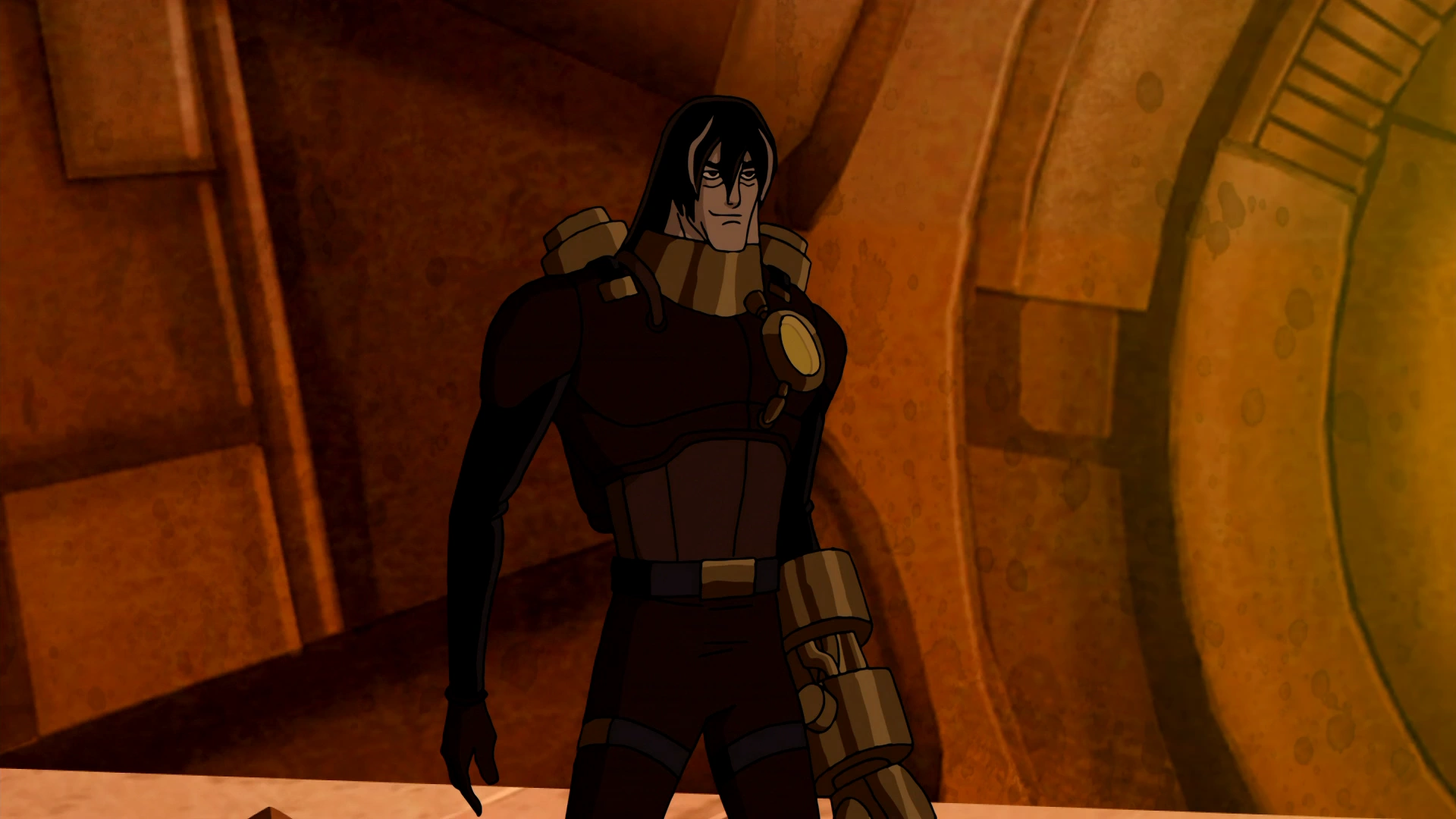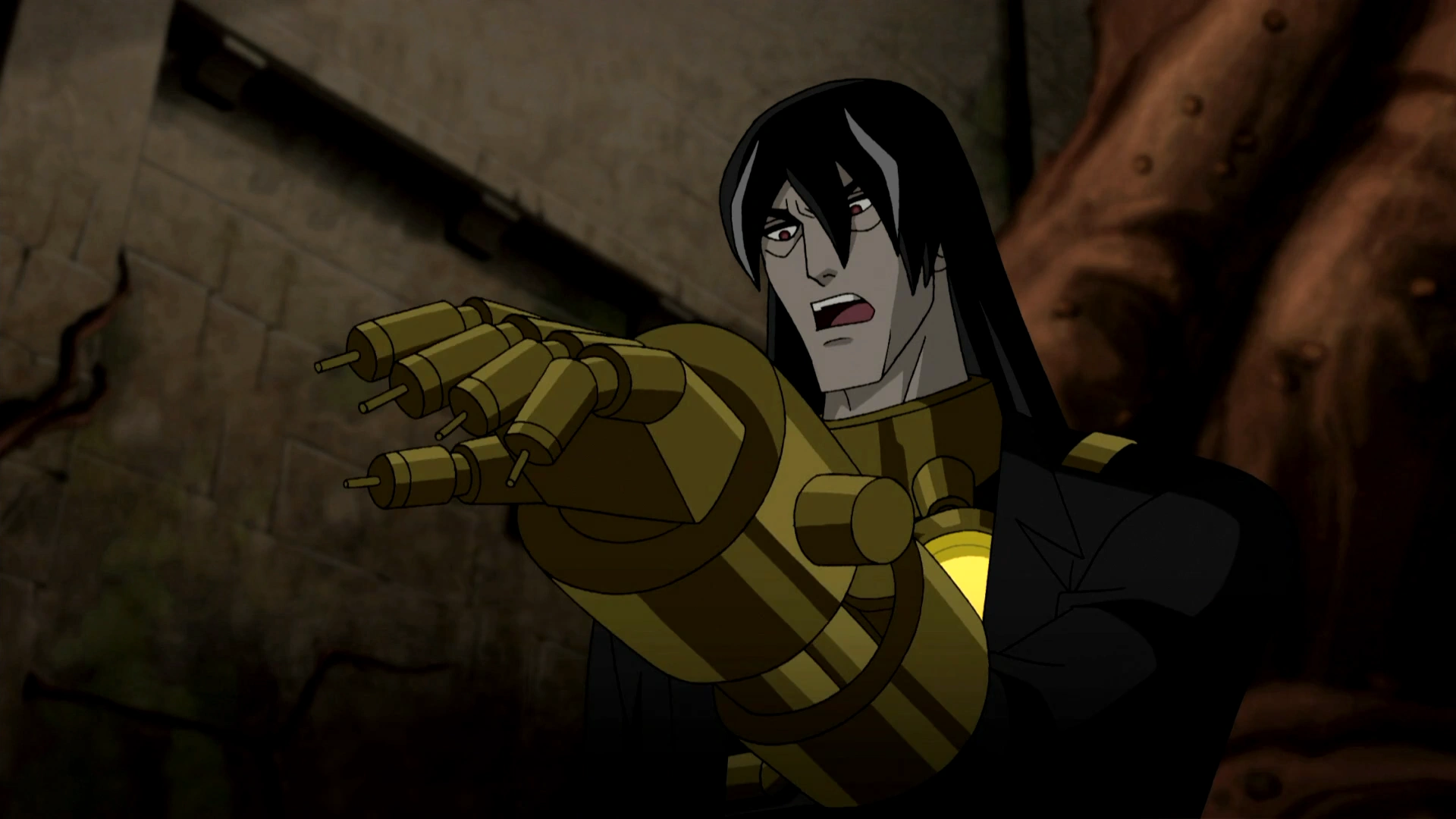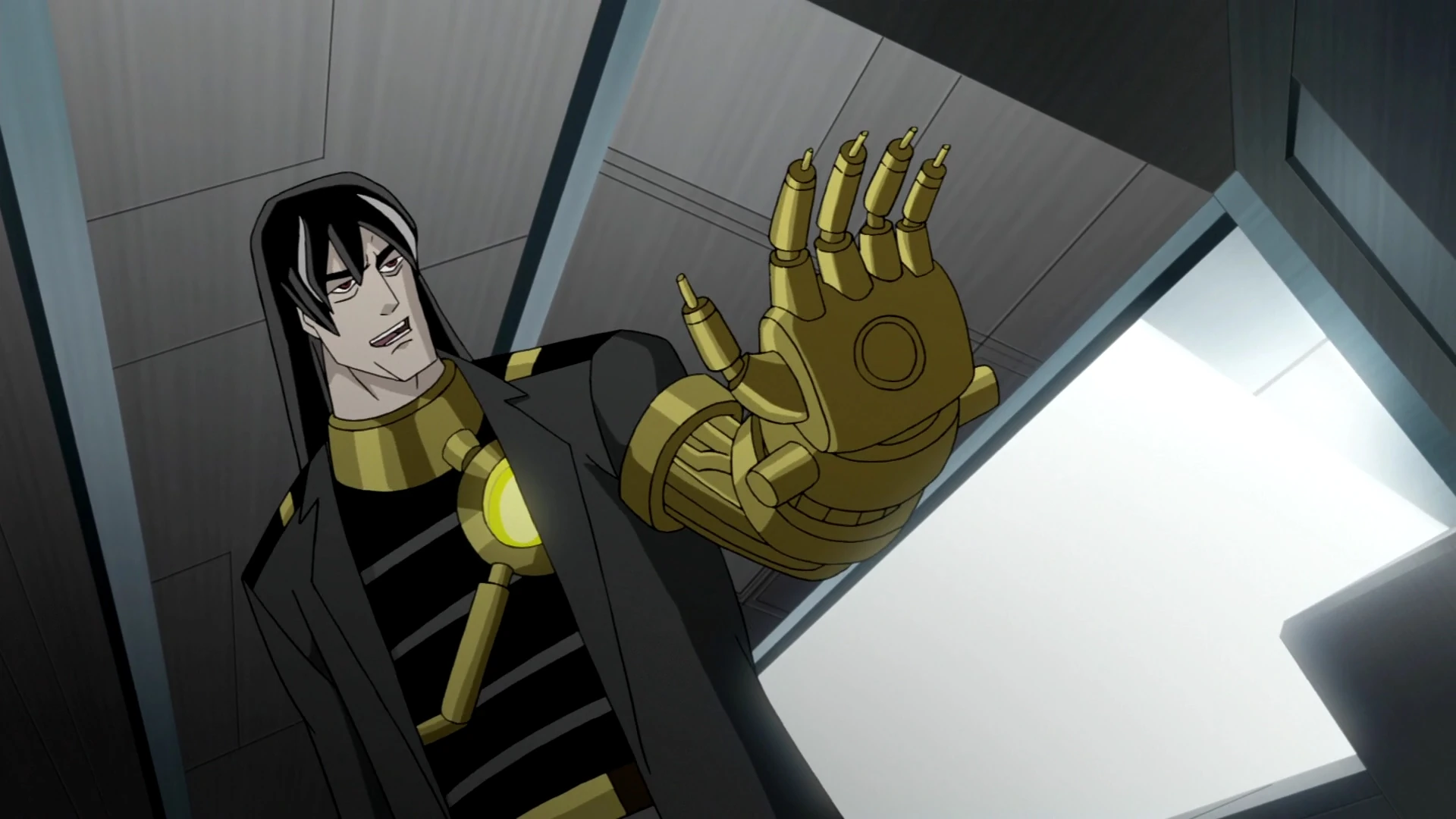 Na szyi nosi złoty kołnierz, który połączony jest ze złotym napierśnikiem w kształcie koła, od którego odchodzą dwie złote rury wczepione w plecy naukowca. Aparatura ta służy podtrzymaniu niestabilnego ciała Van Kleissa i połączona jest ze złotą rękawicą, którą mężczyzna nosi początkowo na lewym przedramieniu, a później na całej ręce[8]. Czubki palców rękawicy zakończone są tępymi szpilami, które przekształcają się w ostre igły, gdy Van Kleiss chce się pożywić nanitami[3].