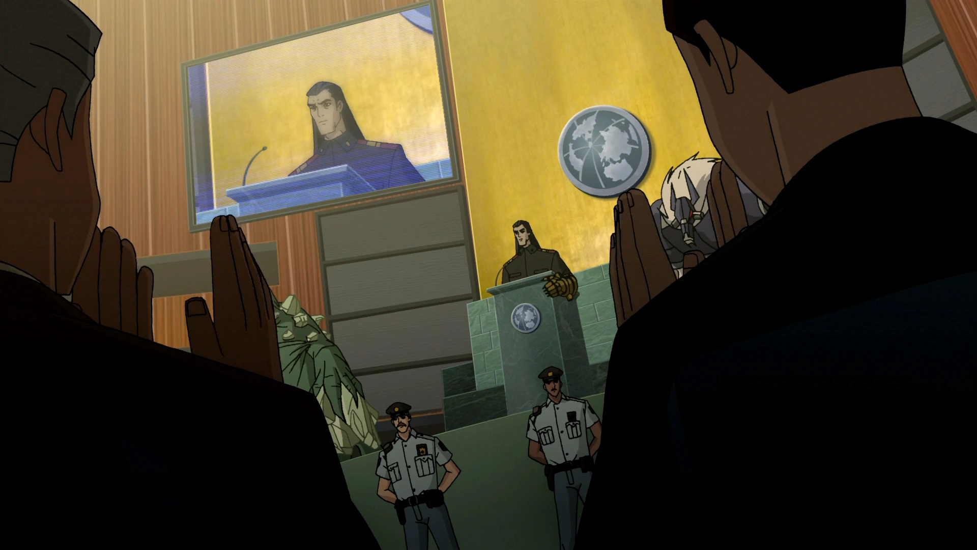 Van Kleiss wygłasza przemowę w budynku ONZ-u.